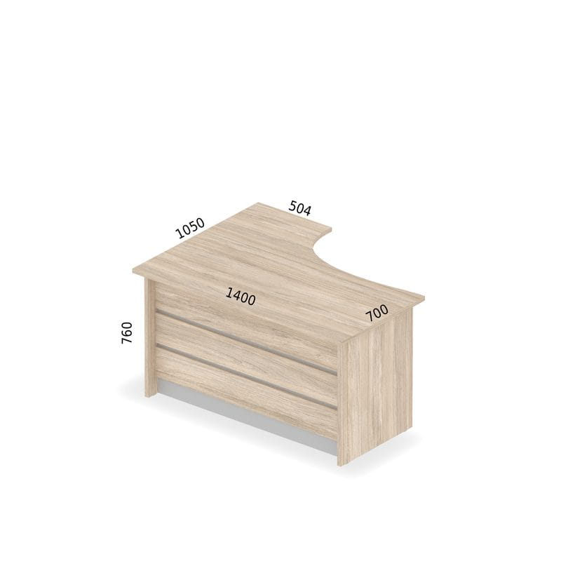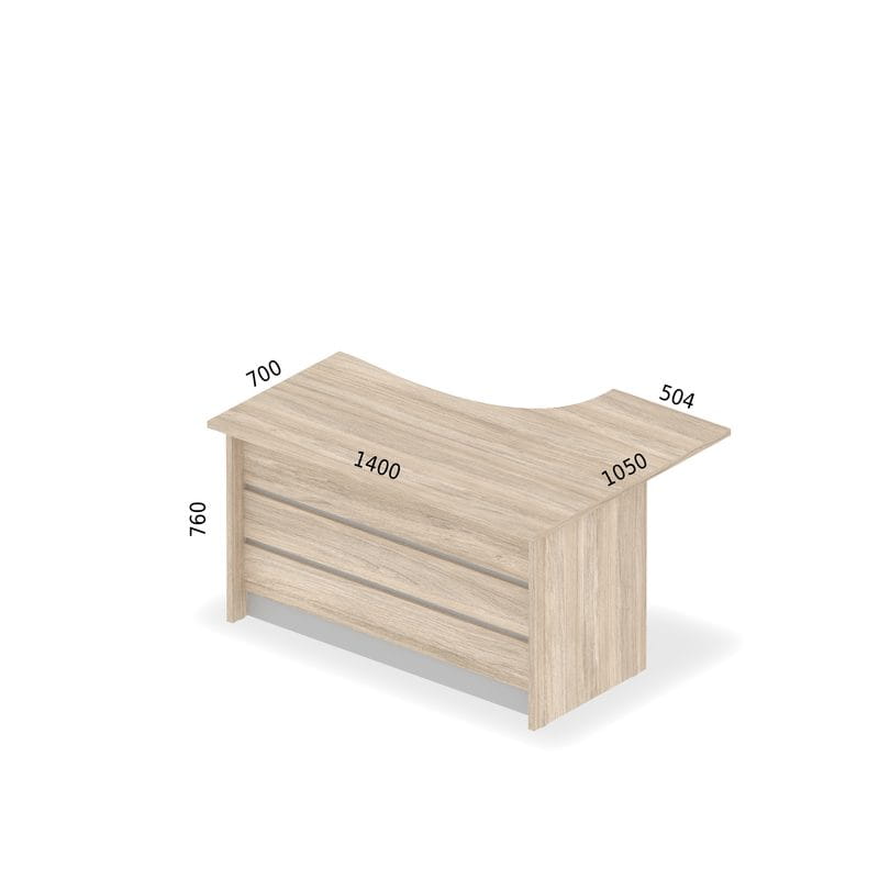 Biurko Btx5 o wymiarach: 140x105x70/504x76cm (dł. x szer. x wys.).