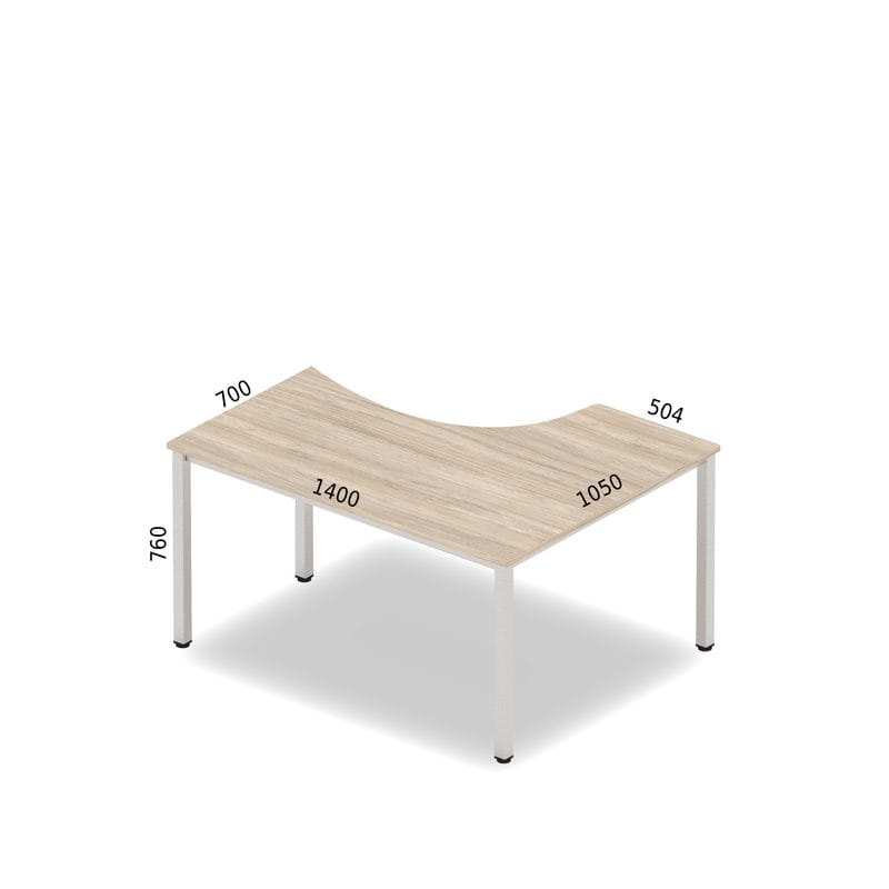 Biurko narożne lewe Btk5 na nogach kwadratowych o wymiarach: 140x105x70/50,4x76cm.