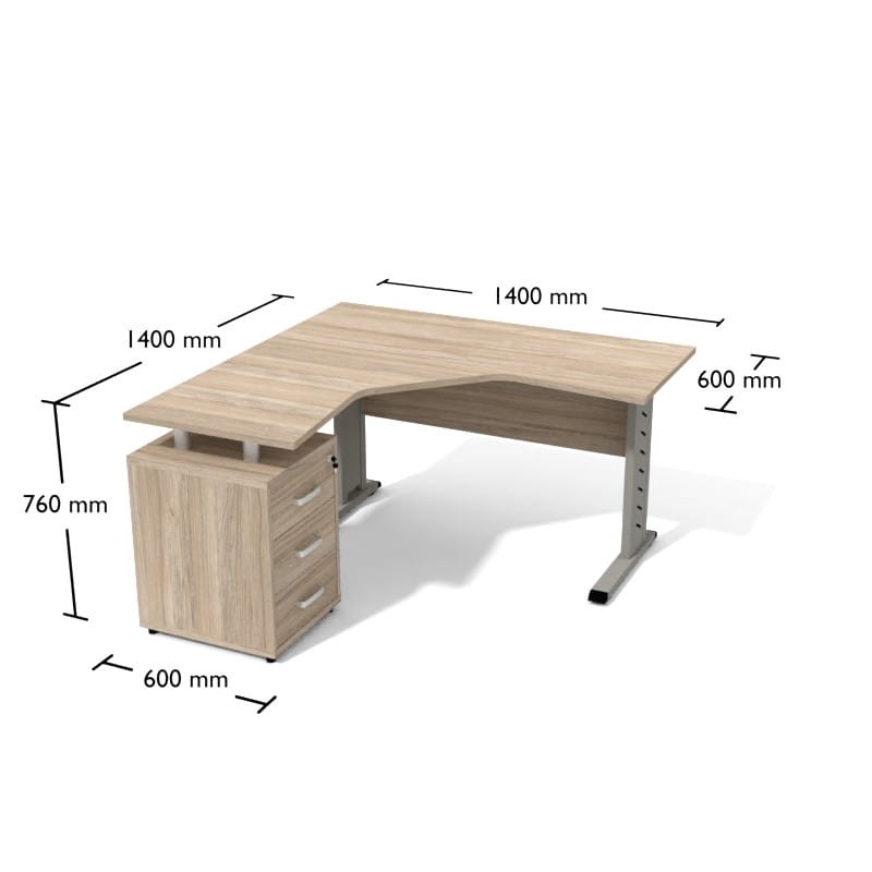 Biurko narożne lewe Opt3 na stelażu "L" o wymiarach: 140/60x140/60x76cm.