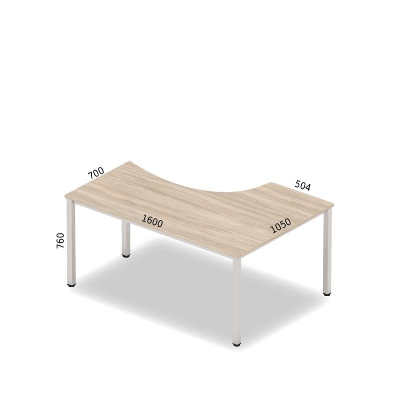 Biurko narożne lewe Btk7 na nogach kwadratowych o wymiarach: 160x105x70/50,4x76cm.