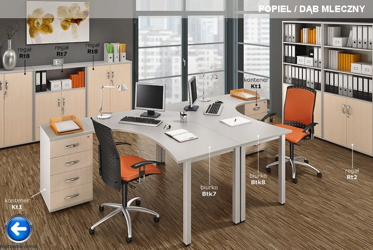 Możliwość zamówienia osłon biurek (blendy) metalowych lub płytowych.