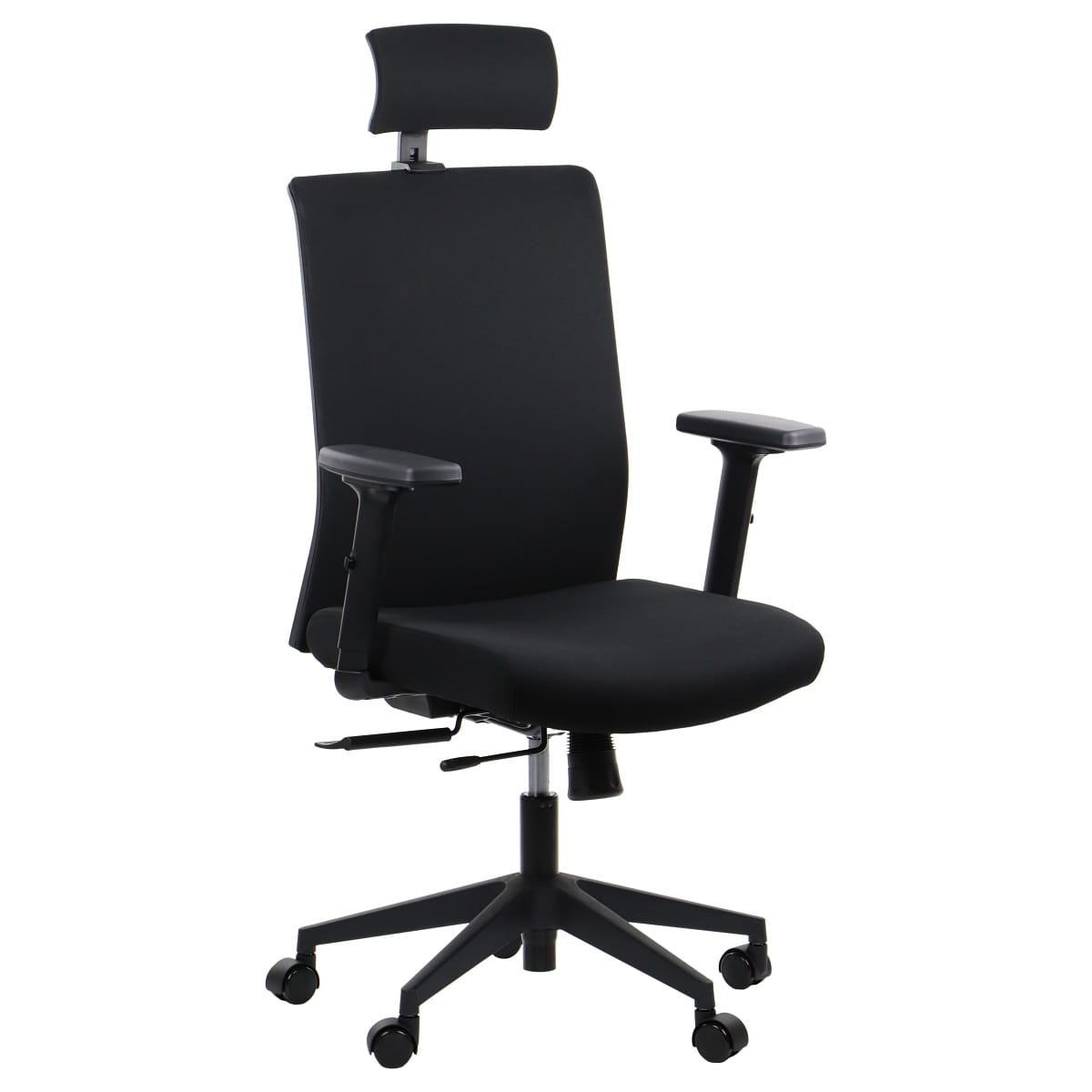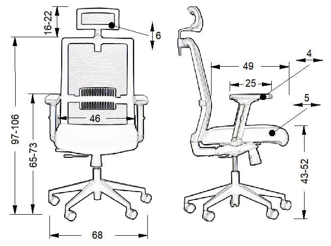 - Oparcie: oparcie tapicerowane tkaniną, regulowane podparcie lędźwiowe