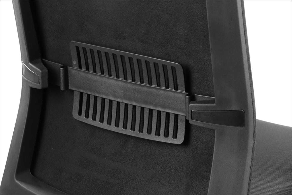 - Oparcie: oparcie tapicerowane tkaniną, regulowane podparcie lędźwiowe