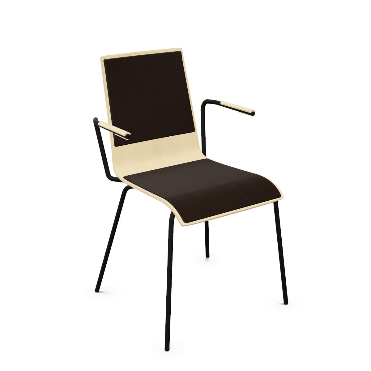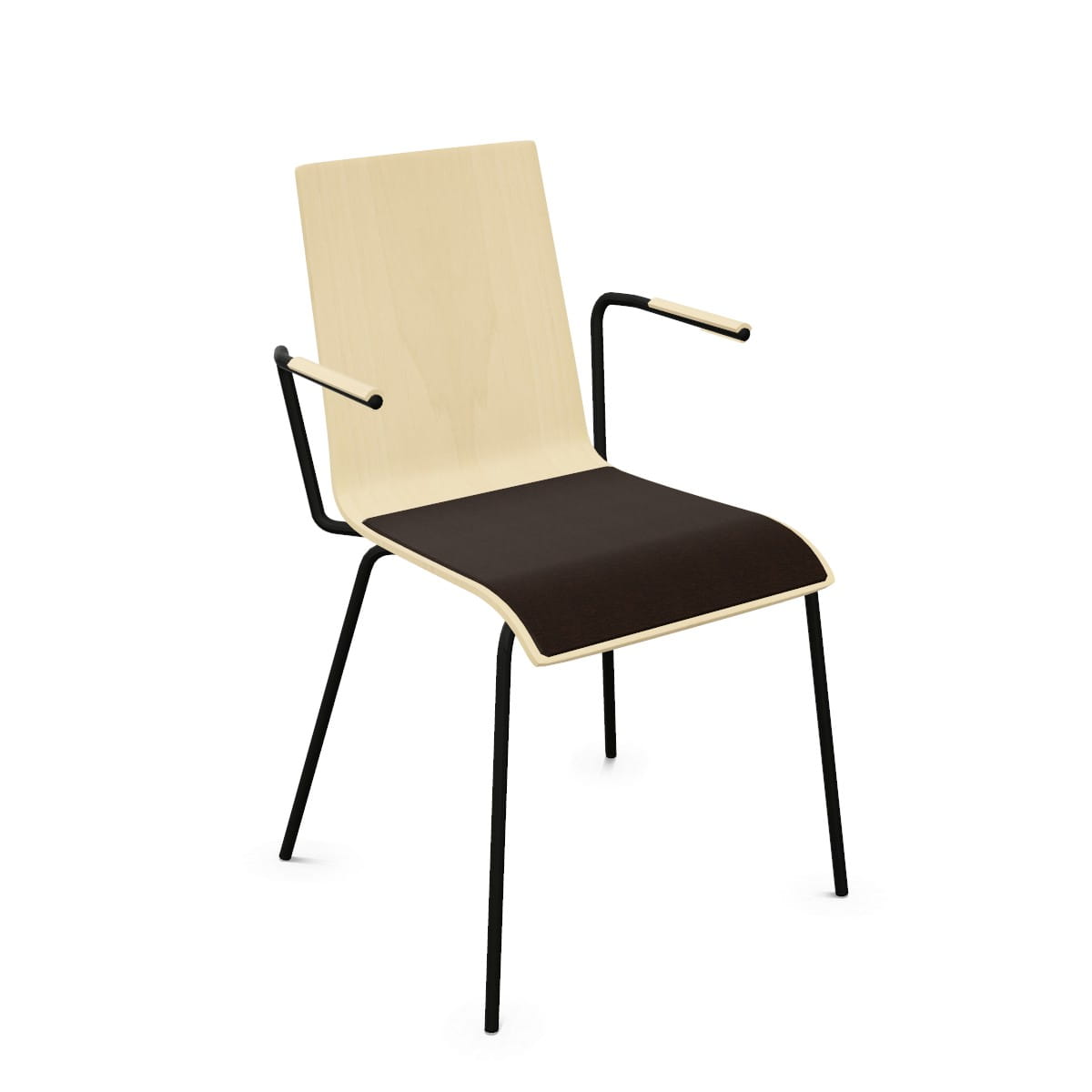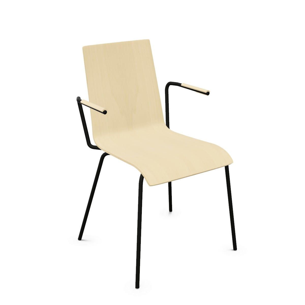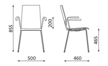 Krzesło konferencyjne na 4 nogach ze zintegrowanymi podłokietnikami, drewniane nakładki podłokietników, rama malowana proszkowo na wybrany kolor lub chromowana, drewniany kubełek ze sklejki bukowej lub laminowanej dostępny w wybranym kolorze, stopki do powierzchni miękkich i powierzchni twardych.