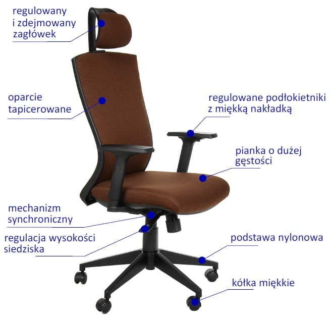 -podłokietniki regulowane z miękkimi (poliuretanowymi) nakładkami,