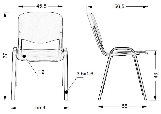 - Krzesło wyposażone w tworzywowe stopki zapobiegające rysowaniu podłoża przez krzesło