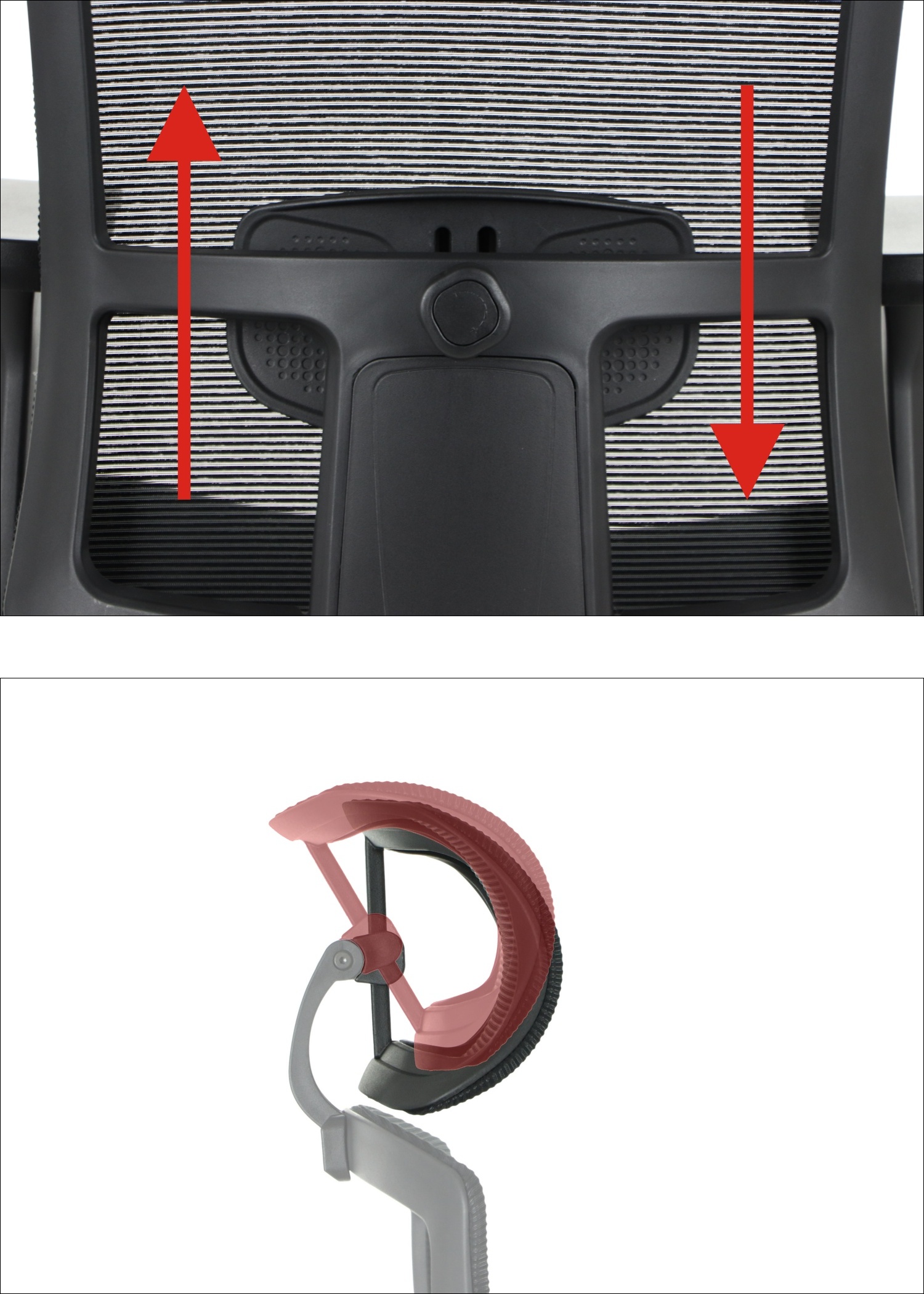 Oparcie: Profilowane, siatkowe i oddychające, regulowane na wysokość dla wentylacji podczas długich sesji.