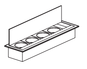 Mediabox posiada 4 gniazdka 230 V. Możliwe również domówienie 2x RJ45 kat. 5e UTP oraz 1x HDMI.