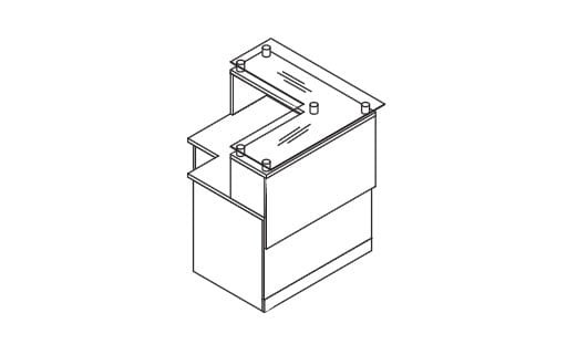 - górny blat: szkło hartowane gr. 8mm matowe wsparte na aluminiowych stopkach