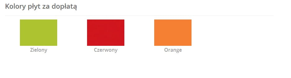- kolory zielony, czerwony i pomarańczowy za dopłatą +15%.