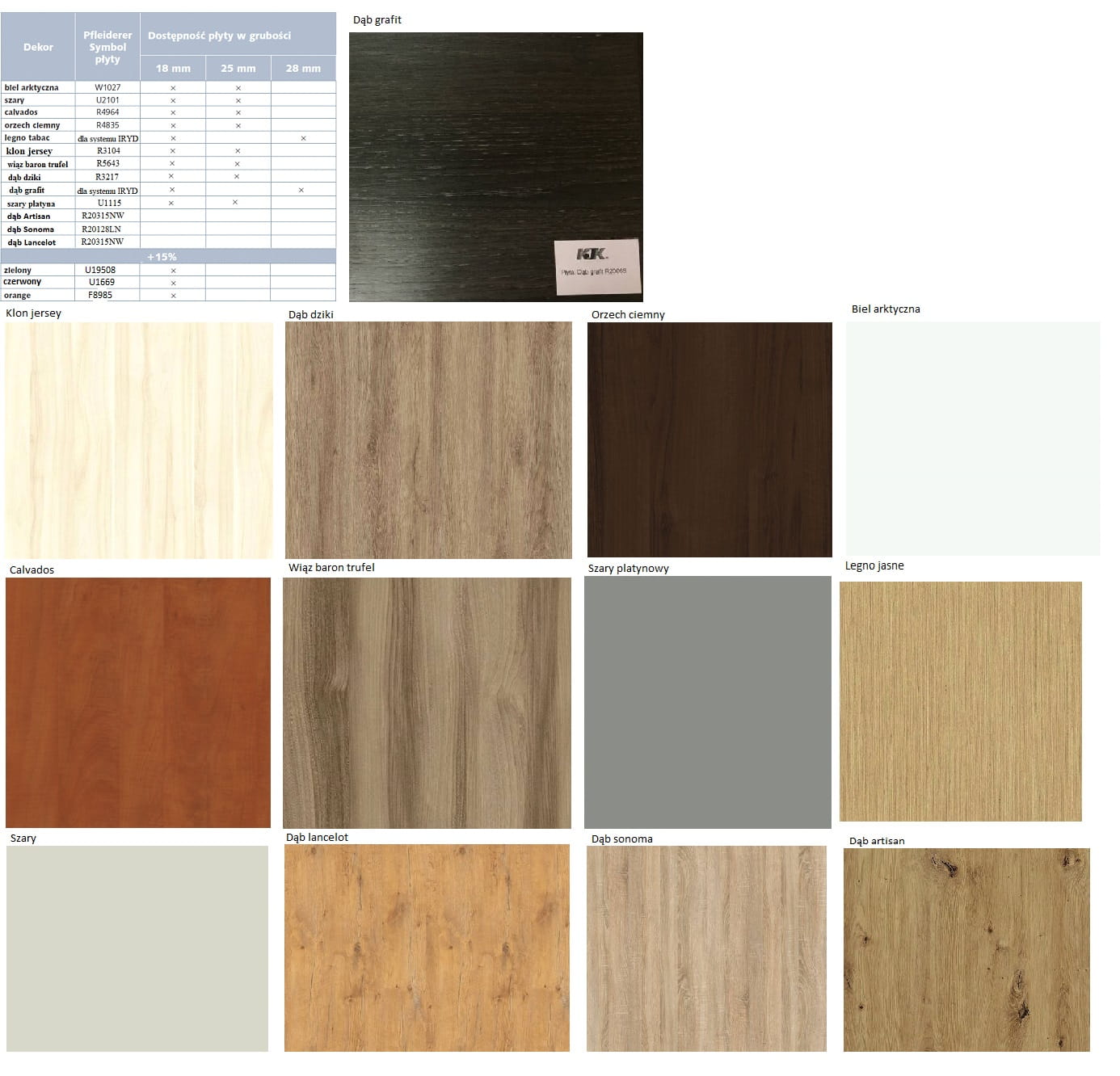 12 kolorów płyt oraz 8 kolorów blach do wyboru.