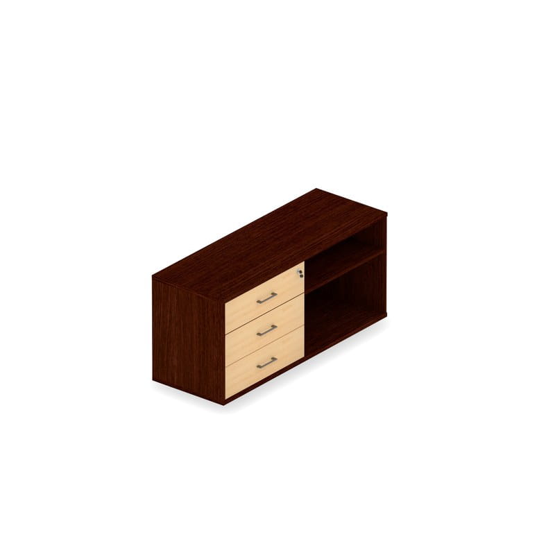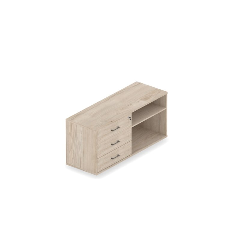 Pomocnik biurkowy lewy 140 cm Xar-P1 z szufladami, półką i pojedynczą przestrzenią segregatorową