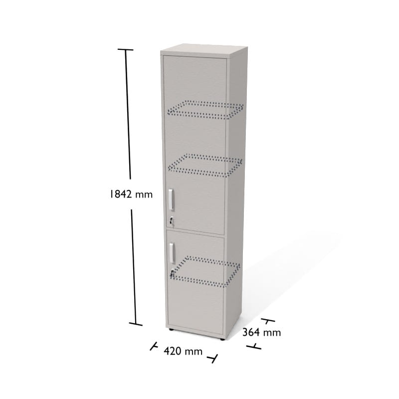 Regał biurowy Rt5d wysoki, wąski, zamknięty w podziale 2/3