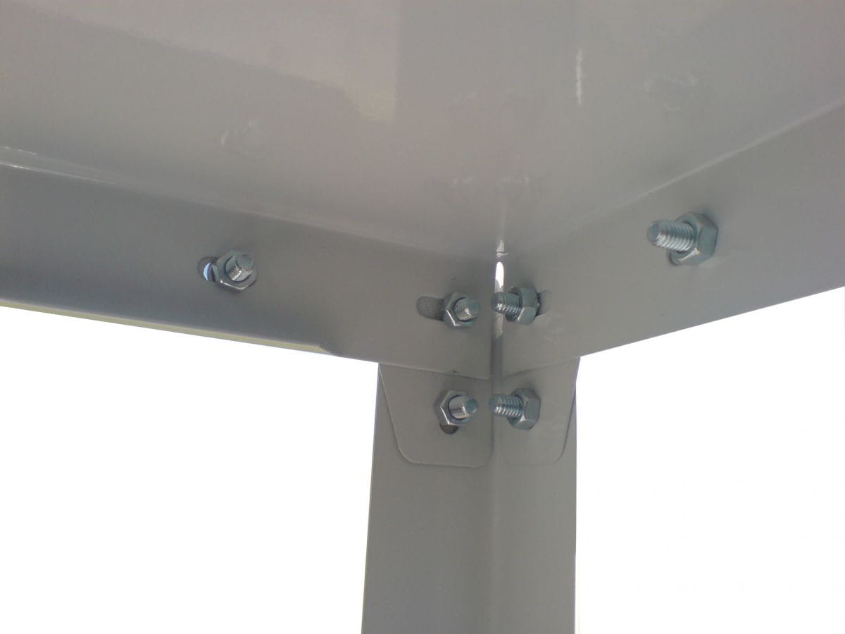 Standardowo półka o nośności 100kg wykonana z blachy o grubości 0,8mm, nogi o profilu 35x35mm o grubości 1,5mm.