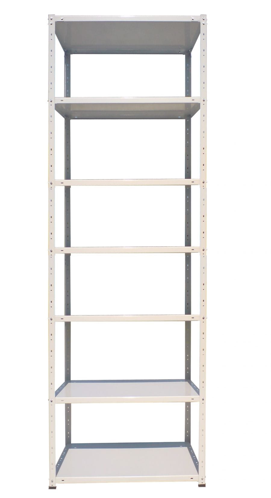 Regały skręcane śrubami M8 (zaczepowe na zapytanie) z półkami metalowymi (przejdź do z półkami wiórowymi).