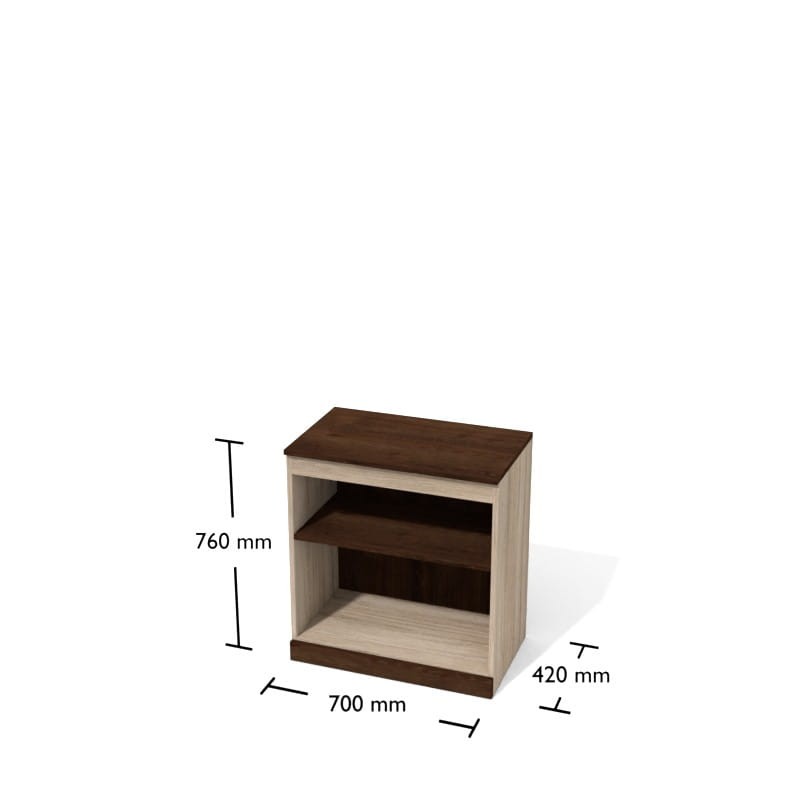 Regał biurowy niski Wgr18 o wymiarach: 70x42x76cm (dł. x szer. x wys.) w kolorze Grafit/Biały. Otwarty - 1 przestrzeń segregatorowa + 1 półka.