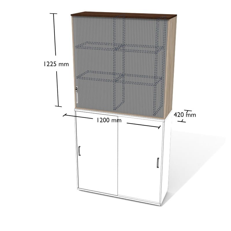 Regał żaluzjowy Wgsaz1 o wymiarach: 120x42x122,5cm (dł. x szer. x wys.) w kolorze Grafit/Biały. Regał posiada 3 przestrzenie segregatorowe z drzwiami żaluzjowymi wyposażonymi we wpuszczane uchwyty muszelkowe. Żaluzja otwiera się od lewej strony.