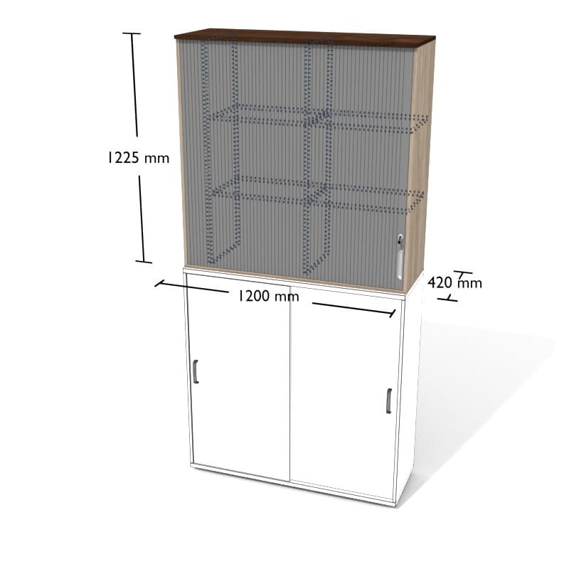Regał żaluzjowy Wgsaz2 o wymiarach: 120x42x122,5cm (dł. x szer. x wys.) w kolorze Grafit/Biały. Regał posiada 3 przestrzenie segregatorowe z drzwiami żaluzjowymi wyposażonymi we wpuszczane uchwyty muszelkowe. Żaluzja otwiera się od prawej strony.