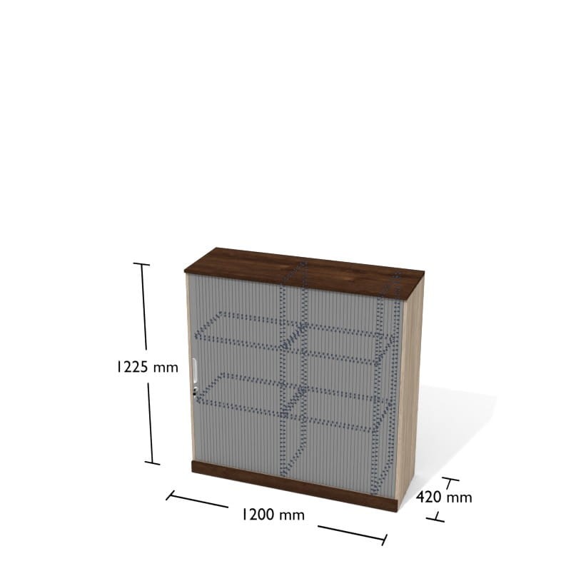 Regał żaluzjowy Wgsaz3 o wymiarach: 120x42x122,5cm (dł. x szer. x wys.) w kolorze Grafit/Biały. Regał posiada 3 przestrzenie segregatorowe z drzwiami żaluzjowymi wyposażonymi we wpuszczane uchwyty muszelkowe. Żaluzja otwiera się od lewej strony.