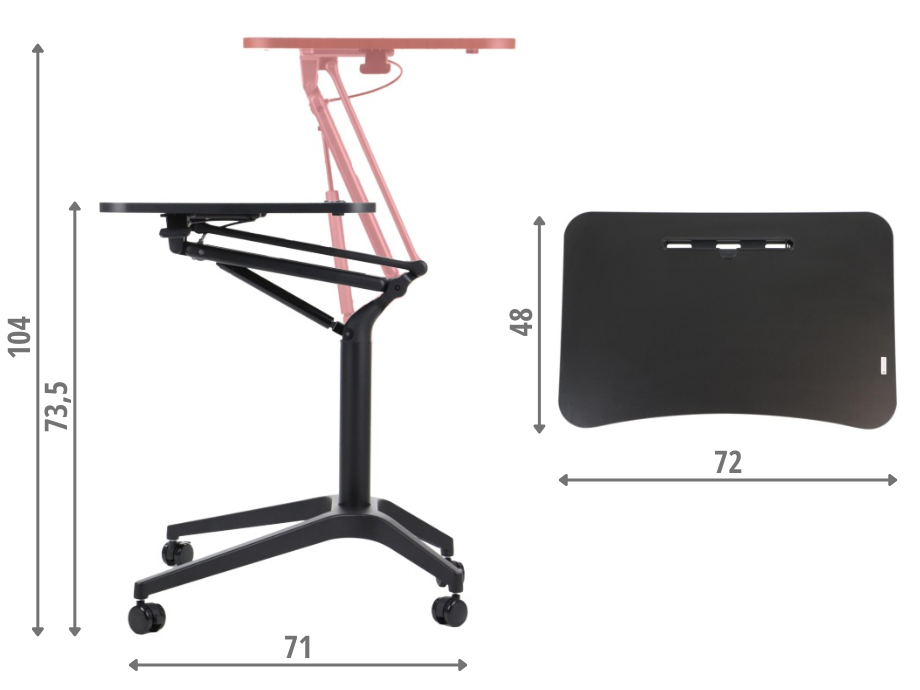 blat z płyty laminowanej o wymiarach 72x48 cm z miejscem na przybory do pisania