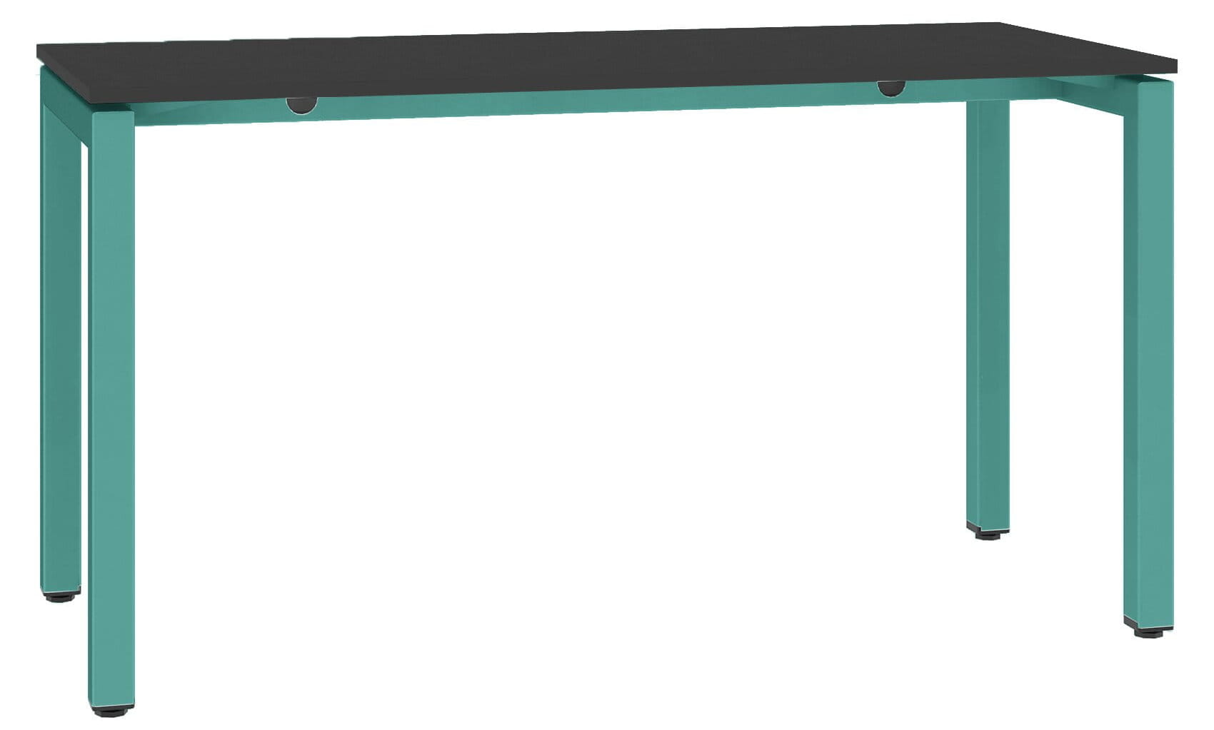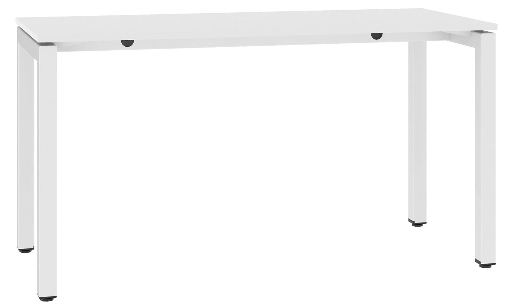 Prostokątny stół biurowy. Nogi stołu wykonane ze stalowych profili o profilu kwadratowym 50 x 50 mm wyposażone w stopki wyrównujące wysokość. Stoły wyposażone w kanał kablowy umieszczony pod blatem umożliwiający w estetyczny sposób przechowanie kabli lub listwy zasilającej. Stoły dostarczane w elementach umożliwiających łatwy montaż.