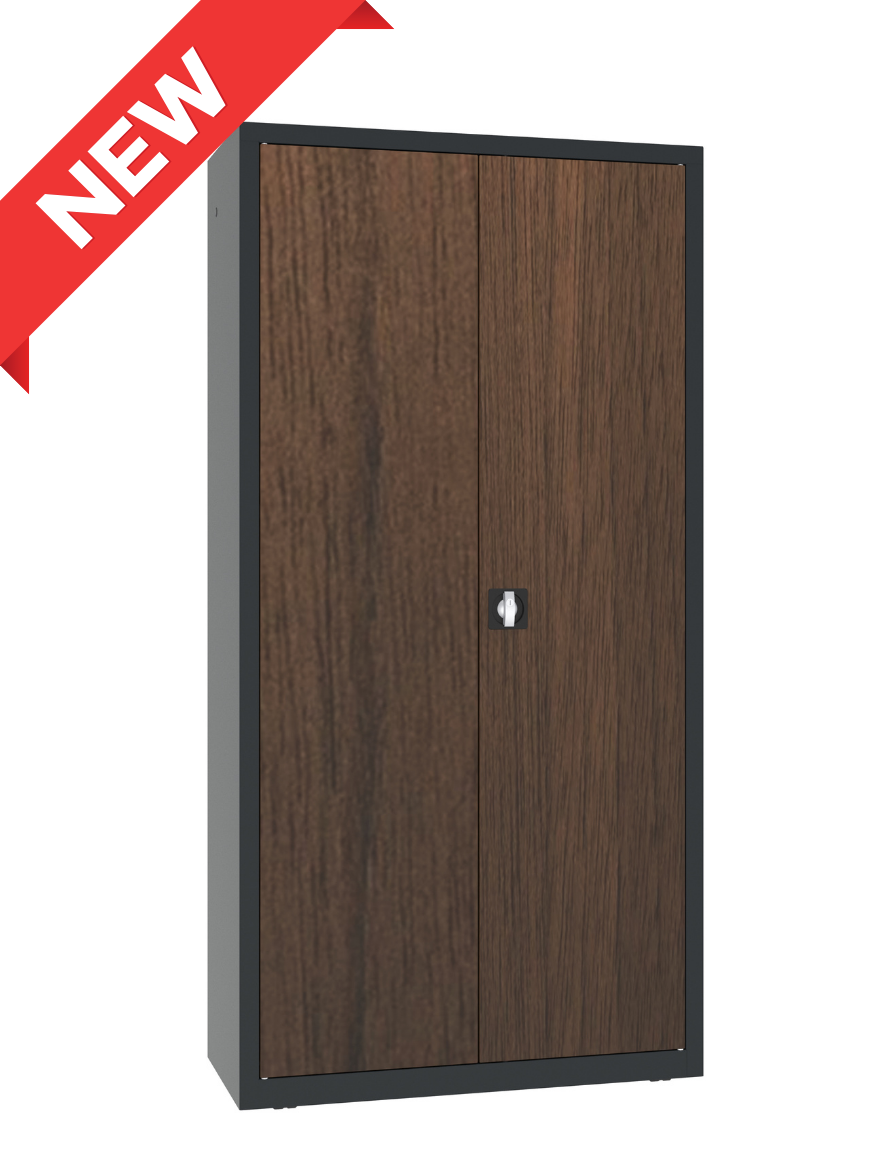 Szafa aktowa SBM 203 M lx LOFT – nowość! Metalowa szafa biurowa z okleiną drewnopodobną do dokumentów i RODO