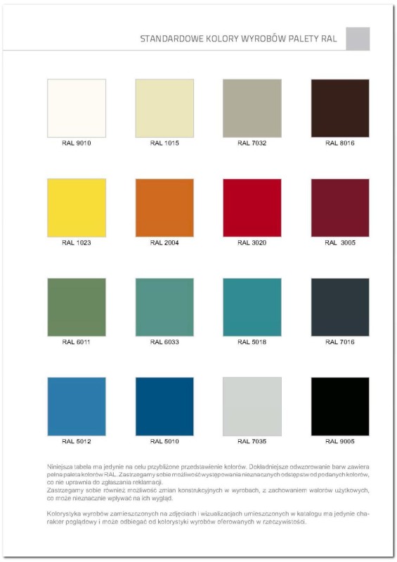 16 kolorów do wyboru z palety RAL