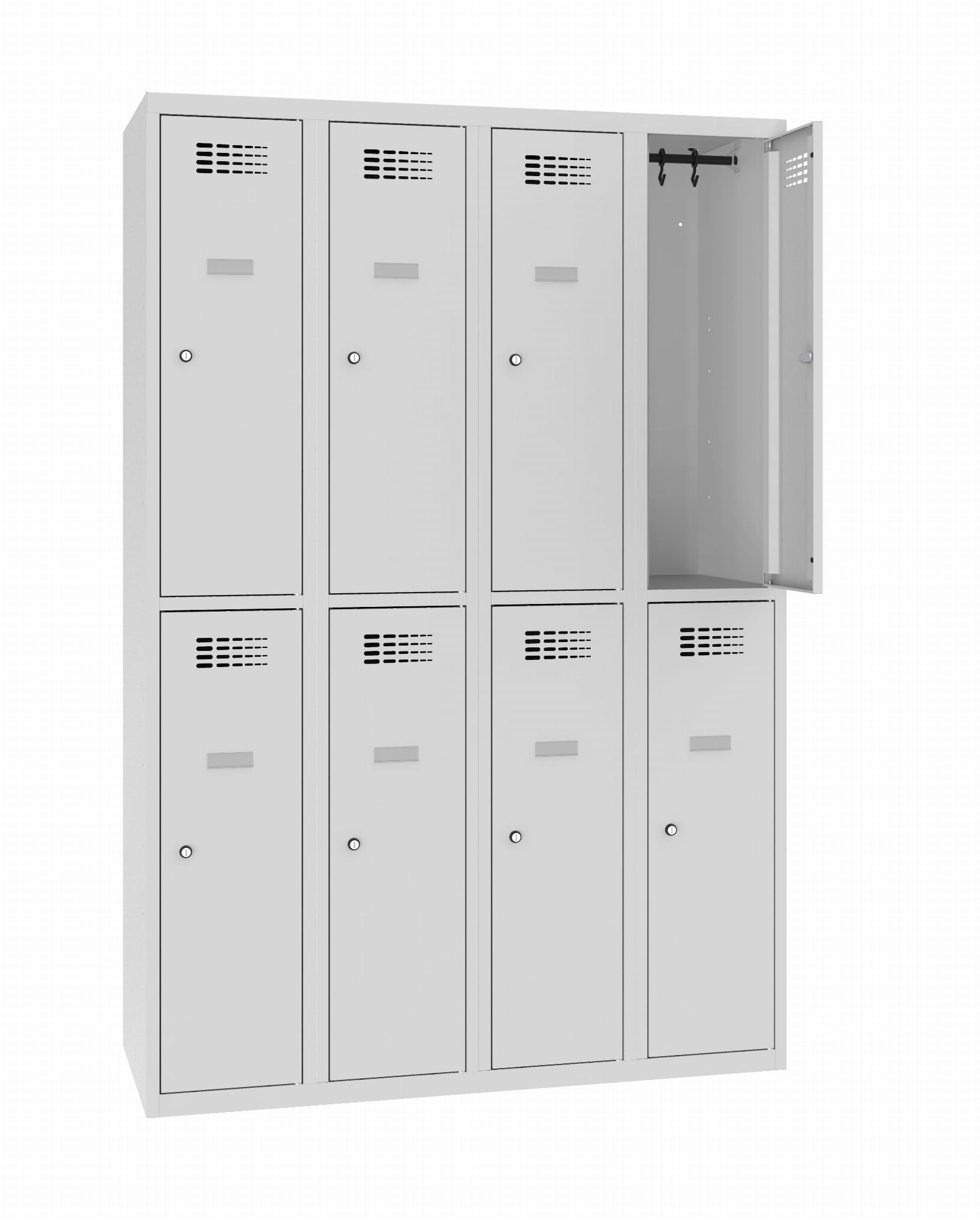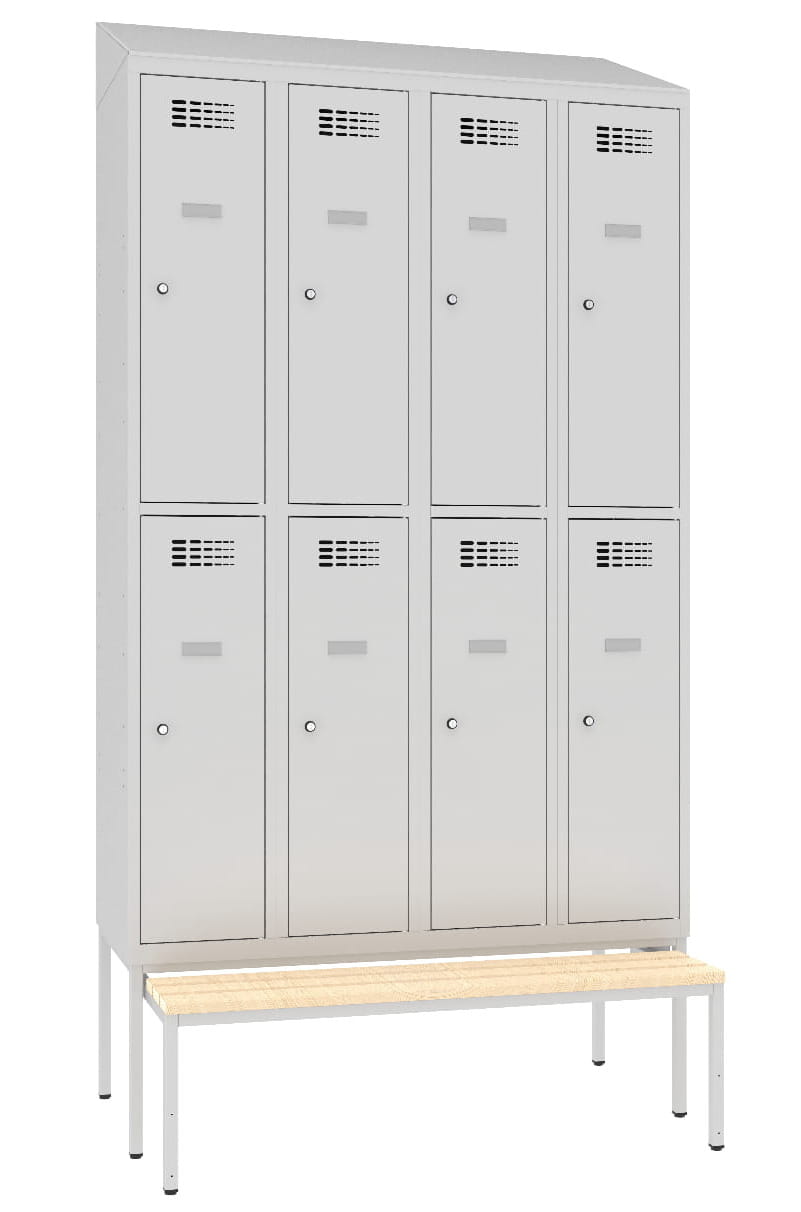 Szafka szatniowa charakteryzuje się solidnym i estetycznym wykonaniem, zachowuje bardzo wysoką sztywność ze względu na technologię potrójnego zagięcia blachy w najbardziej wrażliwych - narażonych na uszkodzenia - miejscach.