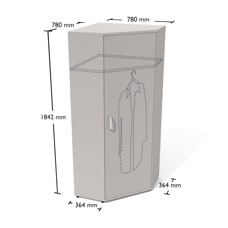 o wymiarach wys. 185cm, 78/36,4x78/36,4x184,2cm (wymiary rogu).