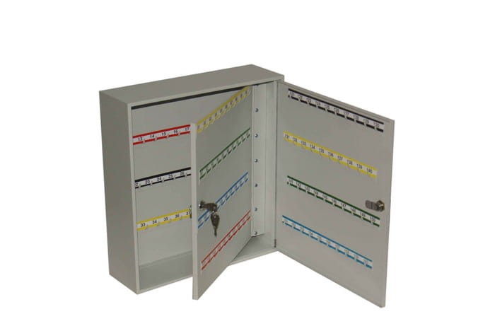 Szafka metalowa SK-160/2Z ze stałymi haczykami na 160szt. kluczy z drzwiami skrzydłowymi.