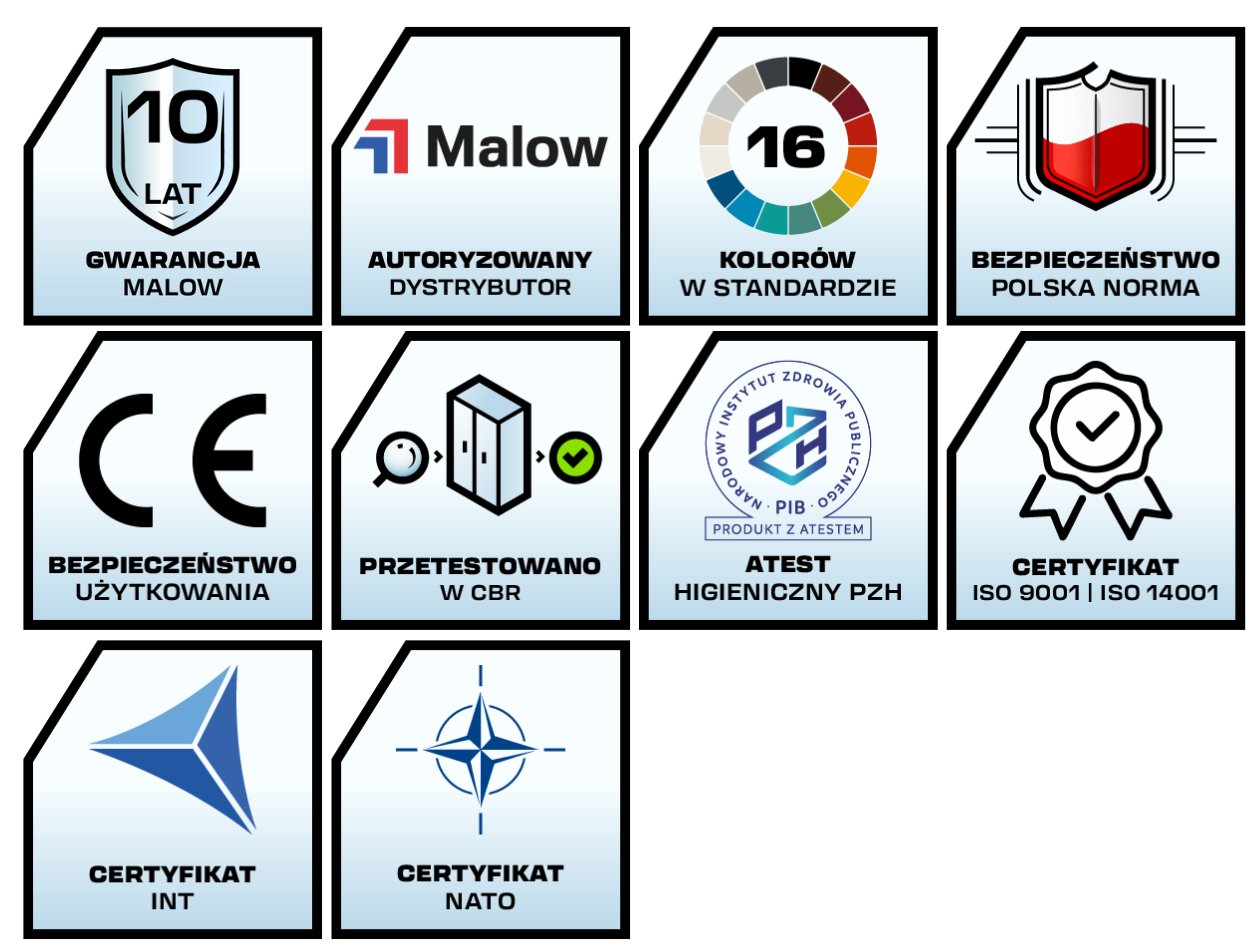 Stosowana technologia cyrkonowania zapewnia skuteczną ochronę antykorozyjną oraz zwiększa przyczepność farby proszkowej, co przekłada się na wyjątkową trwałość i estetykę szafki nawet przy intensywnym użytkowaniu. Produkt posiada certyfikat ISO, potwierdzający wysoką jakość wykonania, zgodność z międzynarodowymi normami oraz bezpieczeństwo użytkowania w środowiskach szkolnych, biurowych i instytucjonalnych.