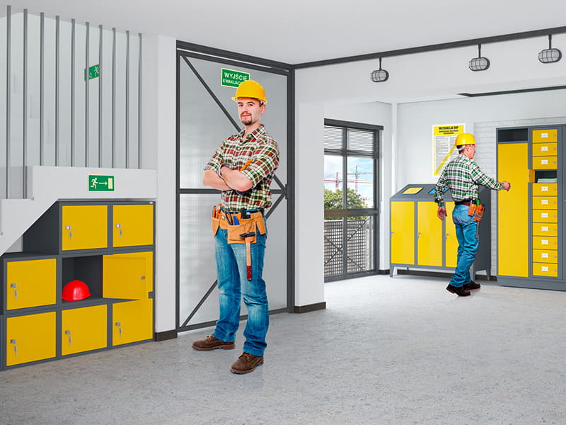 Szafki SKA 1 są modułowymi, indywidualnymi szafkami umożliwiającymi zabudowę niewymiarowych przestrzeni do przechowywania rzeczy osobistych, takich jak: elektronikę, zabawki, prasę, kaski ? głównie w pomieszczeniach socjalnych na placach budowy. Ich uniwersalna konstrukcja sprawia, że równie dobrze mogą być wykorzystane w domach oraz mieszkaniach do przechowywania zabawek, prasy lub innych drobnych rzeczy, jak i w szatniach pracowniczych. Możliwości ich zastosowania są nieograniczone i zależą od pomysłowości użytkownika. Można dowolnie, puszczając wodze wyobraźni, budować ciekawe, designerskie i kolorowe kompozycje, dostosowując je do pomieszczenia i potrzeb.