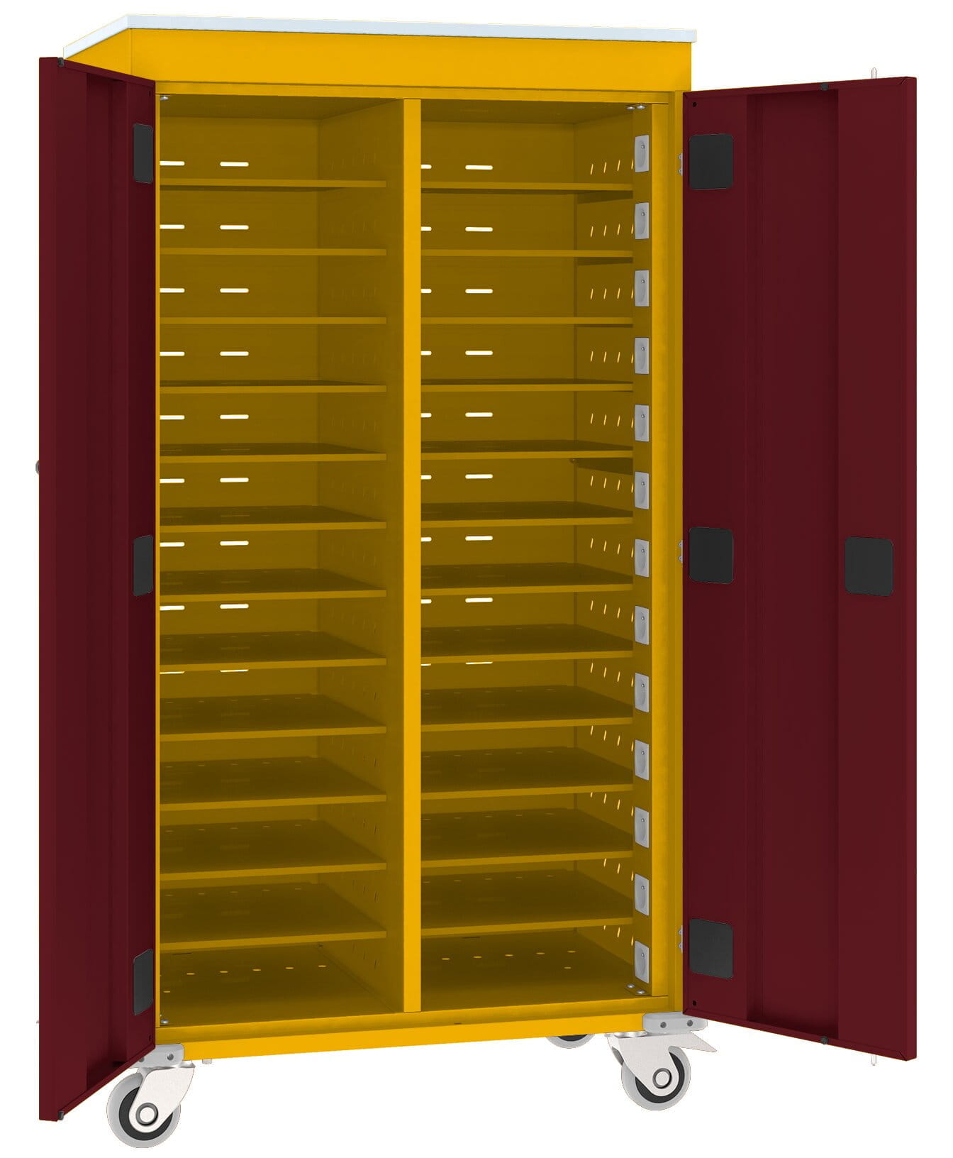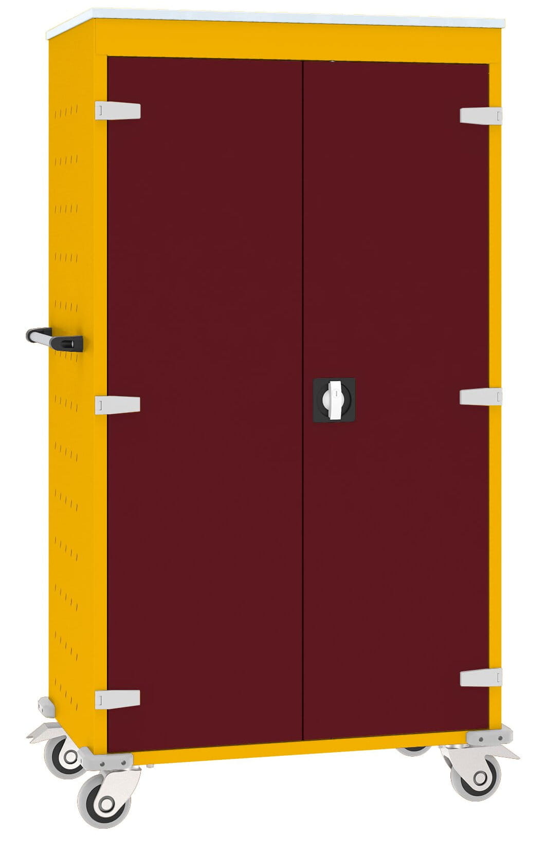 Wózki 2 i 3 kolumnowe posiadają dwoje drzwi skrzydłowych otwieranych od środka, a wózek jednokolumnowy posiada jedne drzwi otwierane na prawą stronę. Wózki posiadają uchwyty do przemieszczania po obu stronach. Wózki wyposażone są w cztery kółka jezdne o średnicy 100 mm i nośności 150 kg na kółko, w tym dwa z hamulcem. Powierzchnia toczna kółek wykonania z gumy nie brudzącej powierzchni. Krawędzie dolne wózka zabezpieczone są narożnikami gumowymi.